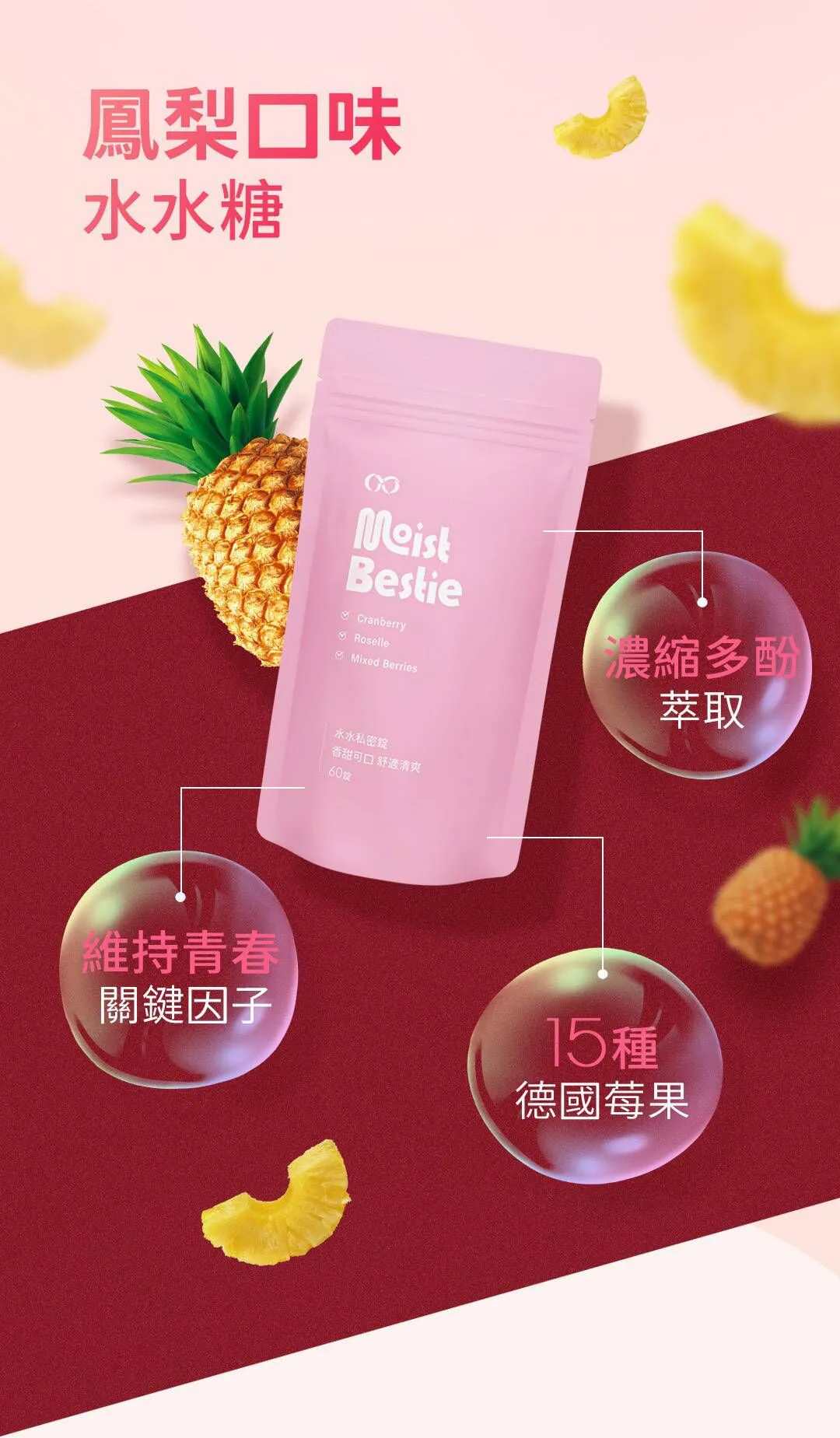 - 鳳梨酵素:獨家生技薄膜濃縮,是親密呵護的關鍵。